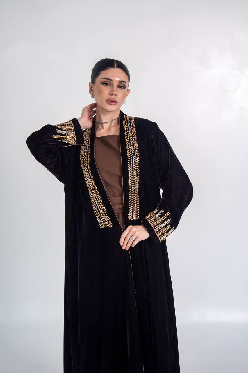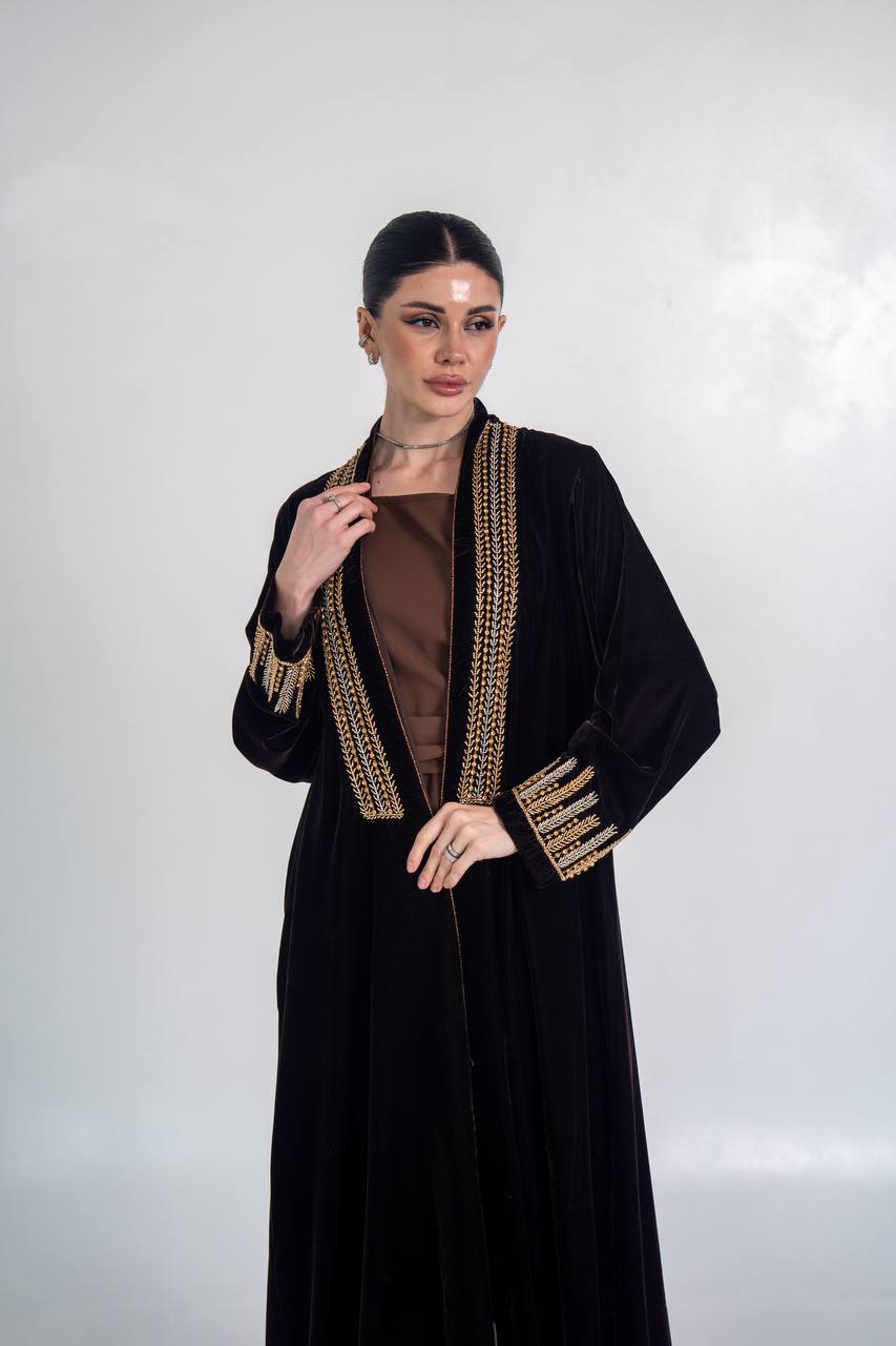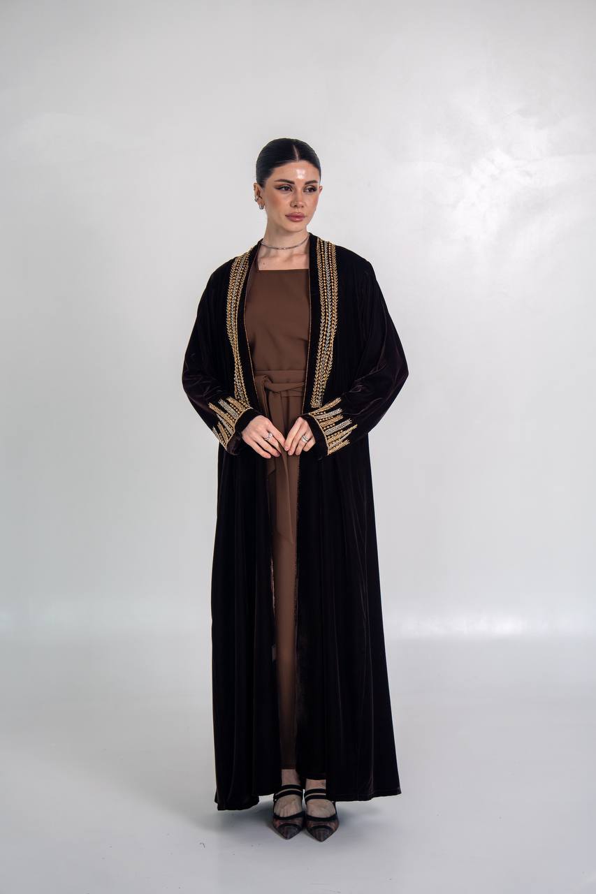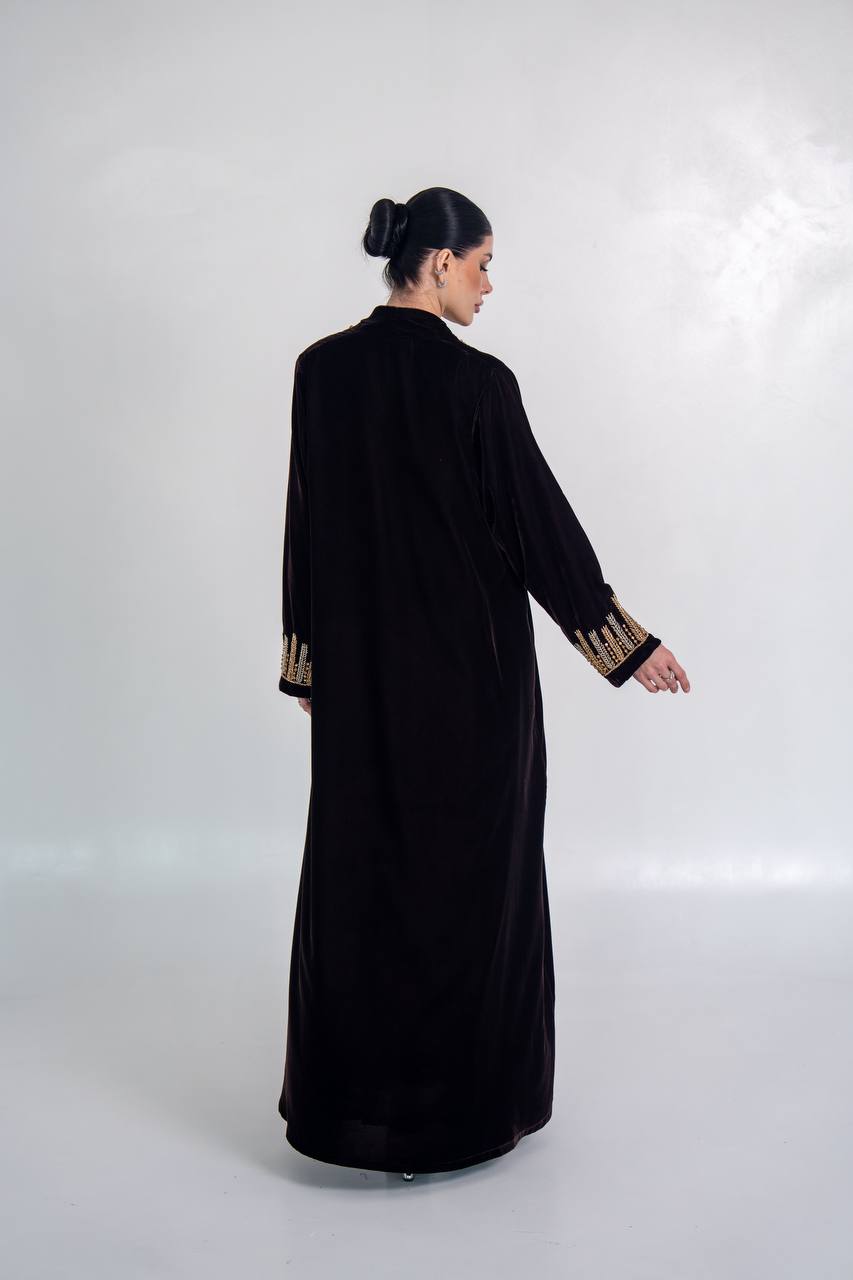 عباية مخمل باللون الاسود مع شك يدوي