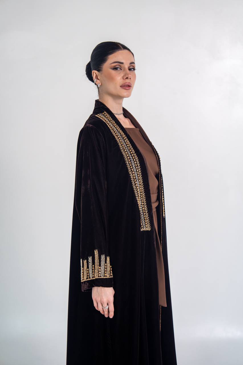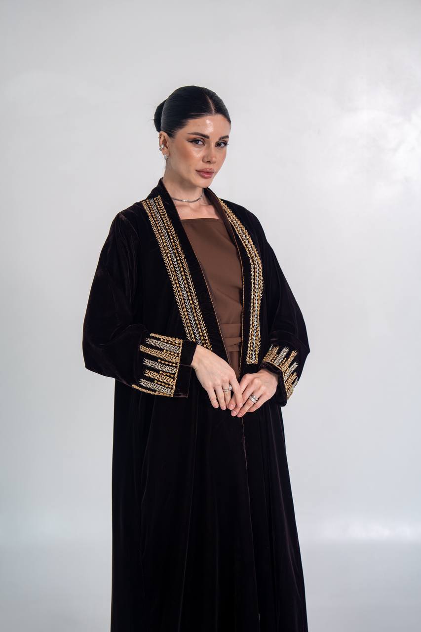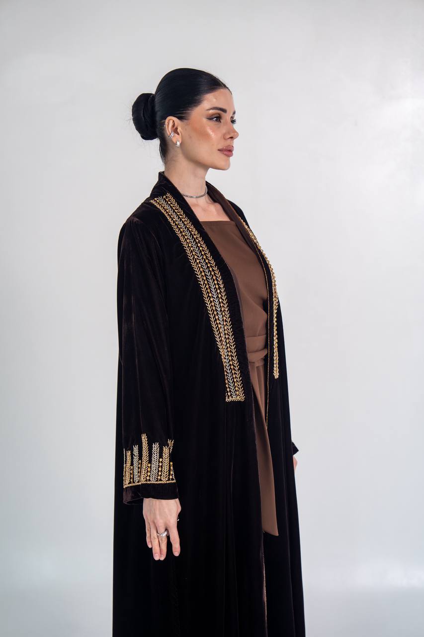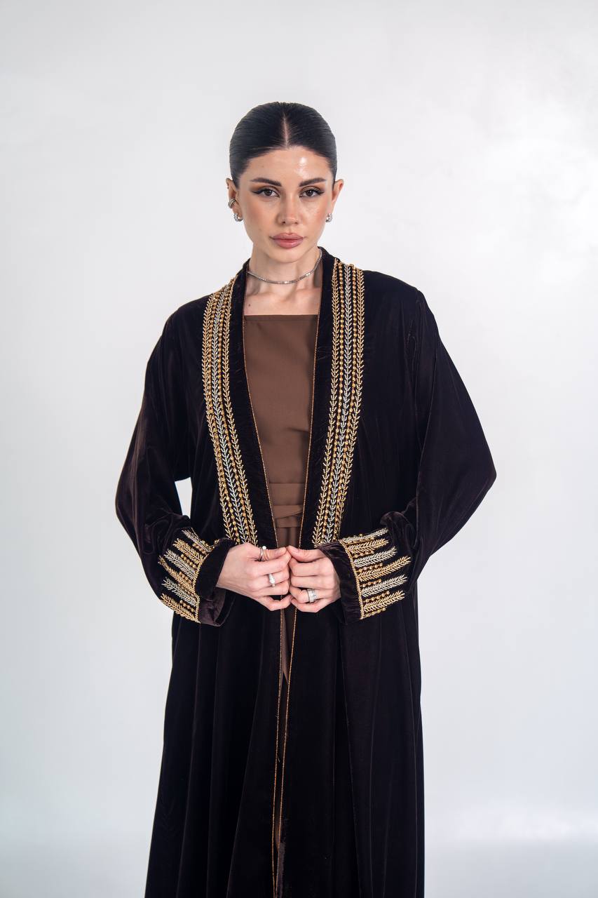 عباية مخمل باللون الاسود مع شك يدوي
