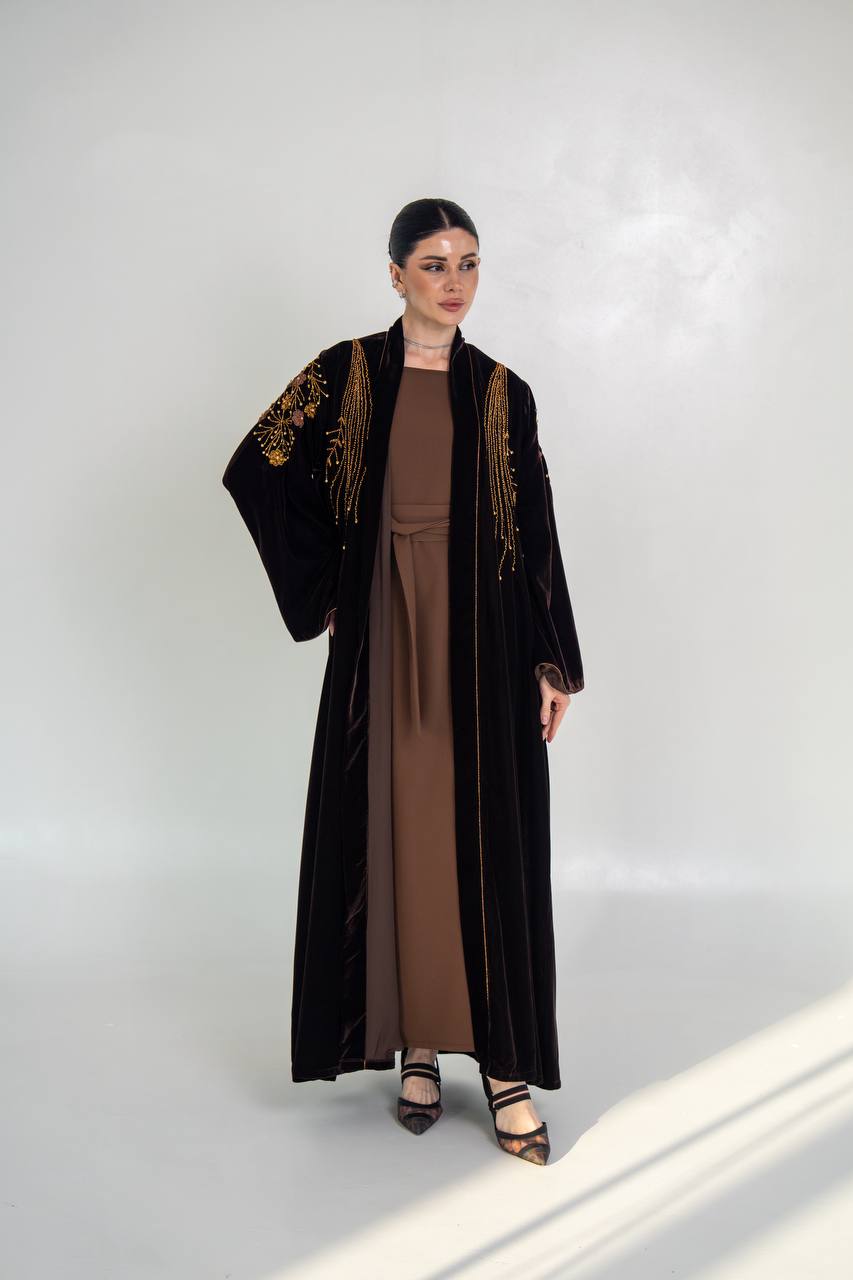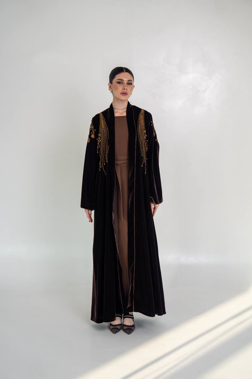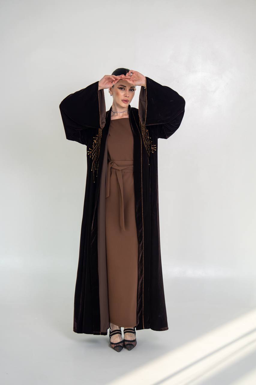 عباية مخمل باللون الاسود مع شك يدوي مميز ، تصميم عملي و انيق يناسب الدوام ، الطلعات و الجامعات .متوفر بجميع المقاسات . ( السعر للعباية فقط و لا يشمل الطقم الداخلي )