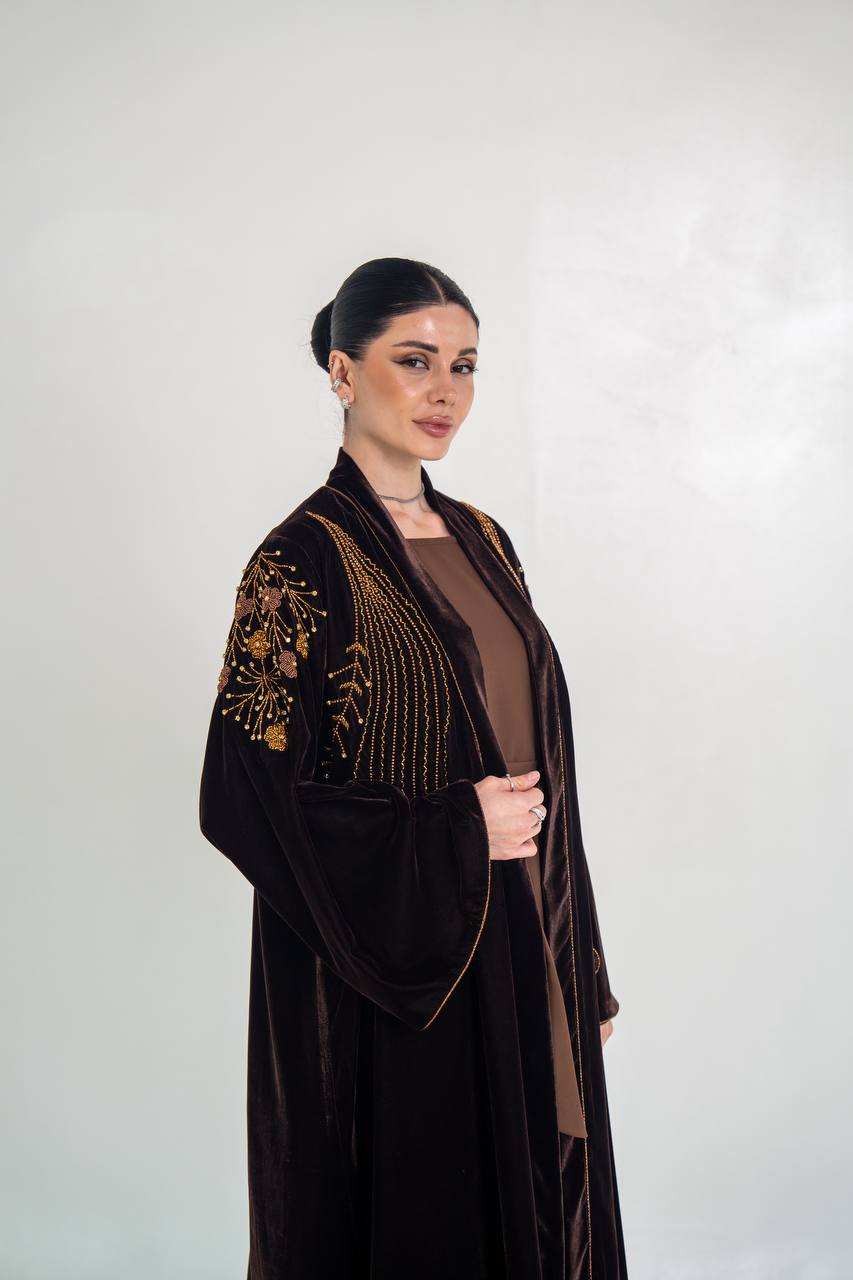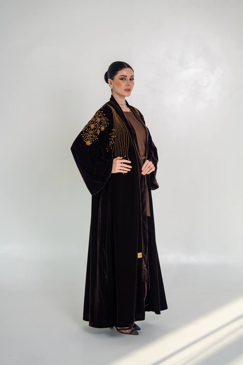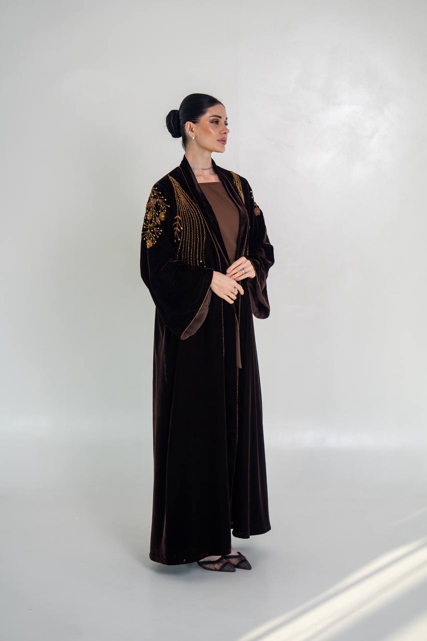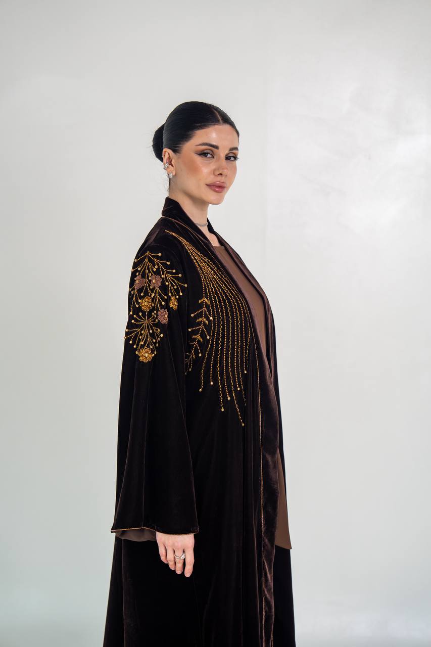 عباية مخمل باللون الاسود مع شك يدوي مميز ، تصميم عملي و انيق يناسب الدوام ، الطلعات و الجامعات .متوفر بجميع المقاسات . ( السعر للعباية فقط و لا يشمل الطقم الداخلي )
