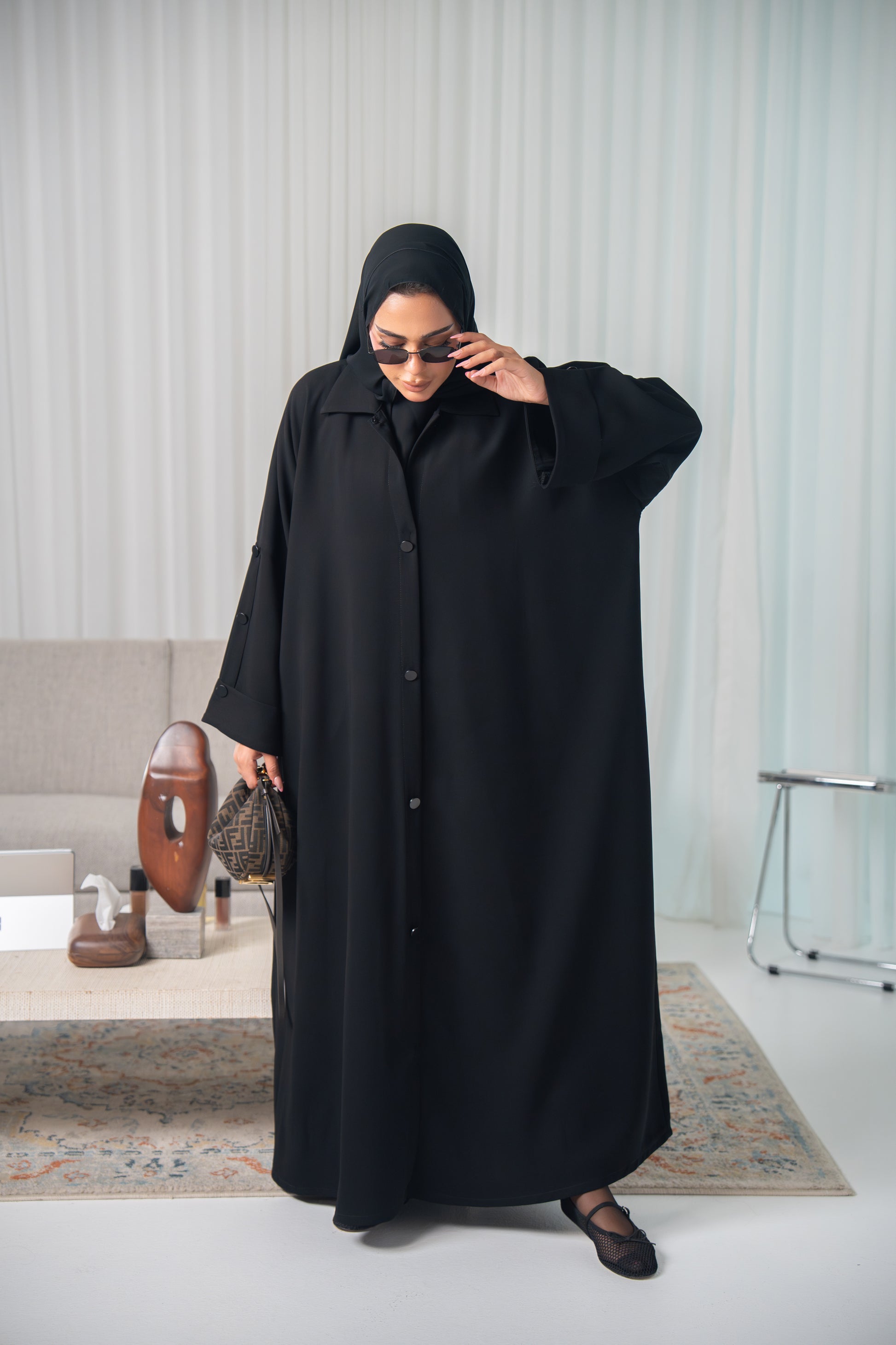 مستوحاة من أناقة الفجر الهادئة، تُضفي عباية سحر لمسة عصرية على الملابس الكلاسيكية المحتشمة. مصنوعة من قماش كريب كوبا الفاخر، تتميز هذه القطعة بتصميم أنيق مع ثنيات ناعمة وتفاصيل منظمة. تُضفي أزرار الأكمام لمسة من الرقي، بينما يضمن التصميم المريح الراحة طوال اليوم. سواءً كنتِ ترتدينها في مناسباتكِ اليومية أو في تجمعاتكِ الراقية، صُممت سحر لتواكبي ذوقكِ بكل ثقة وثقة.
